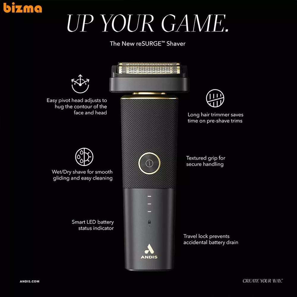 شیور اندیس شارژی Andis 17300 reSurge Shaver دارای طراحی ارگونومیک است که از دست لیز نمی خورد و به راحتی بصورت خشک و مرطوب صورت را اطلاح می کند.