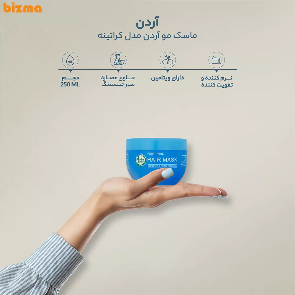 ماسک مو آردن هرباسنس حاوی روغن نارگیل و دانه انگور حجم 250 میلی لیتر