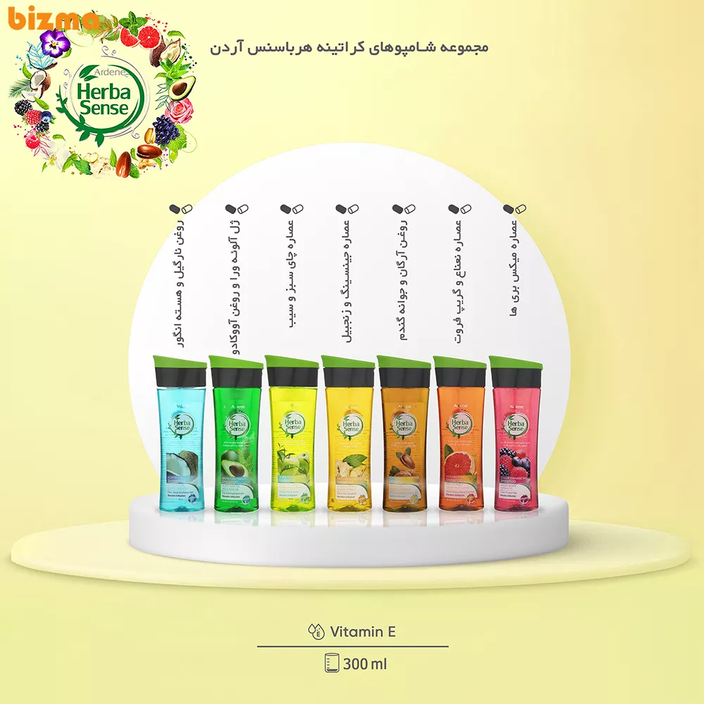 شامپو کراتینه ضد ریزش آردن هرباسنس با عصاره روغن نارگیل و دانه انگور حجم 300 میلی لیتر