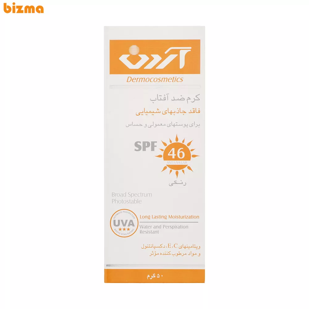 ● حفاظت بالا در برابر اشعههای مضر آفتاب: کرم ضدآفتاب آردن با SPF46، محافظتی قوی و مؤثر در برابر اشعههای UVA و UVB فراهم کرده و این امر به جلوگیری از سوختگی و آسیبهای ناشی از نور خورشید کمک میکند.
