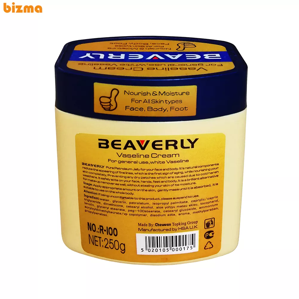 ژل پترولیوم بیورلی یا همان کرم وازلین بیورلی از مواد کاملا با کیفیت و طبیعی درست شده است و در از بین بردن خطوط صورت که یکی از اولین نشانههای پیری است بسیار موثر است. افرادی که در مناطق با آب و هوای سرد زندگی میکنند،اغلب دچار خشکی پوست خواهند شد و انتخاب یک کرم مرطوب کننده قوی ، امری ضروری است. کرم وازلین بیورلی Beaverly Vaseline Cream با آبرسانی کامل پوست ، مانع از خشک شدن پوست خواهد شد. این محصول میتواند جایگزین بسیار مناسب جهت حذف کامل آرایش بدون از بین بردن رطوبت پوست باشد. این محصول با انواع پوست سازگاری داشته و محصولی ایدهآل جهت استفاده روزانه است.