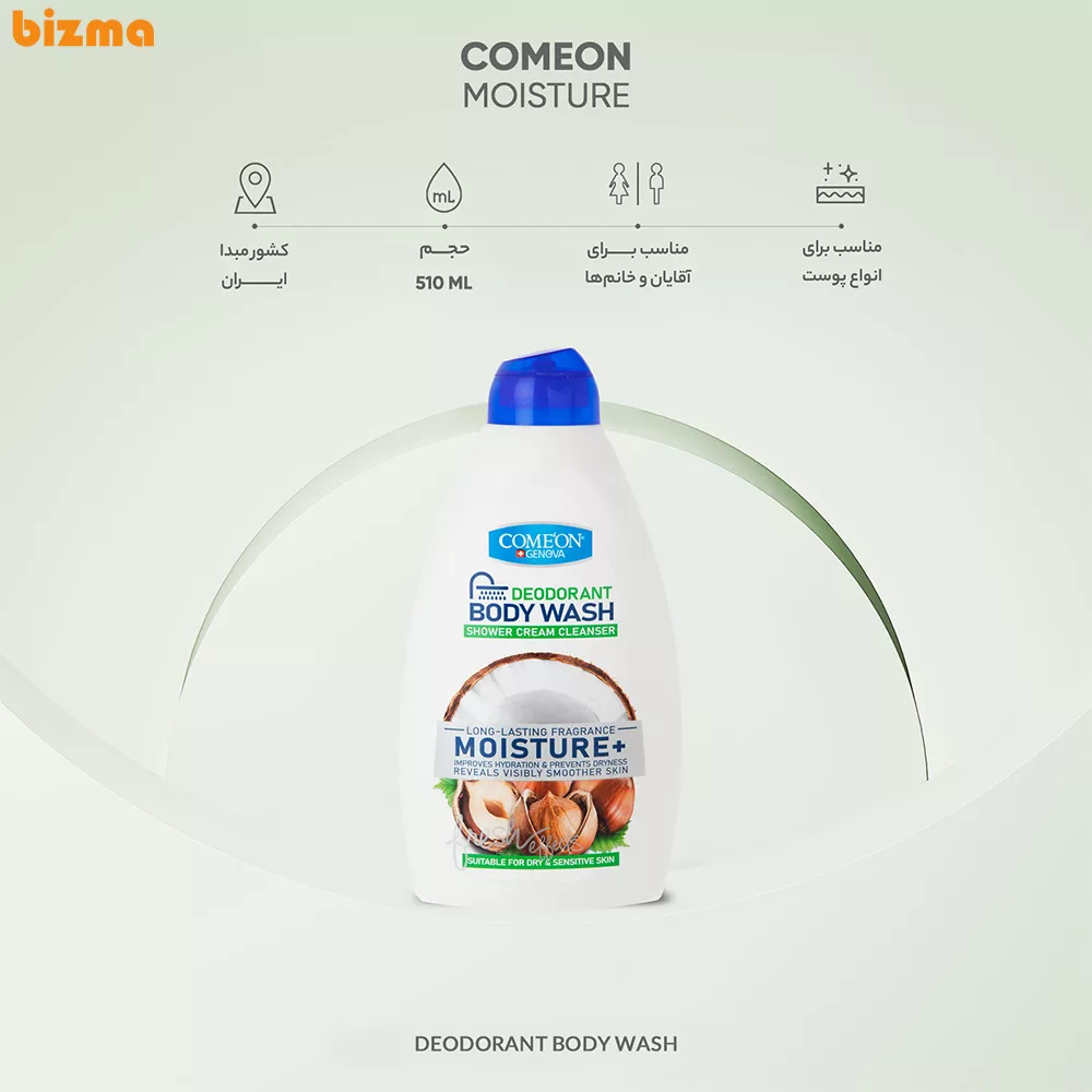 شامپو بدن کرمی کامان مدل رطوبت رسان مناسب پوست حساس حجم 510 میلی لیتر