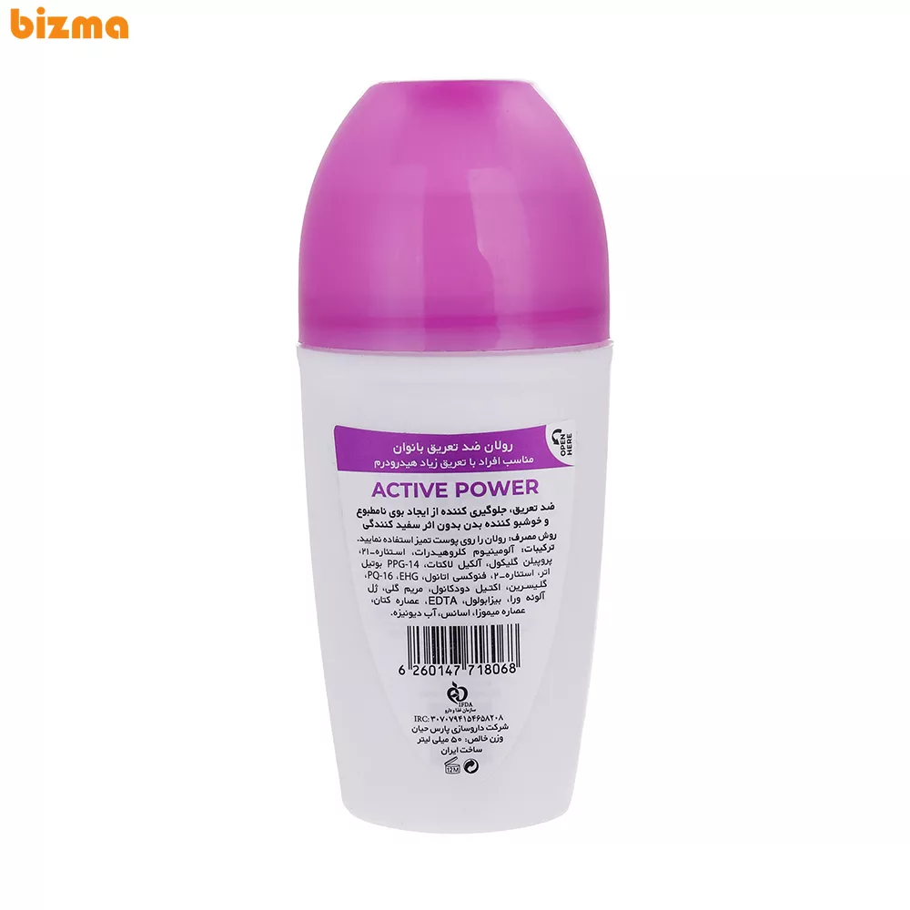 رول ضد تعریق زنانه هیدرودرم مدل Active Power حجم 50 میلی لیتر