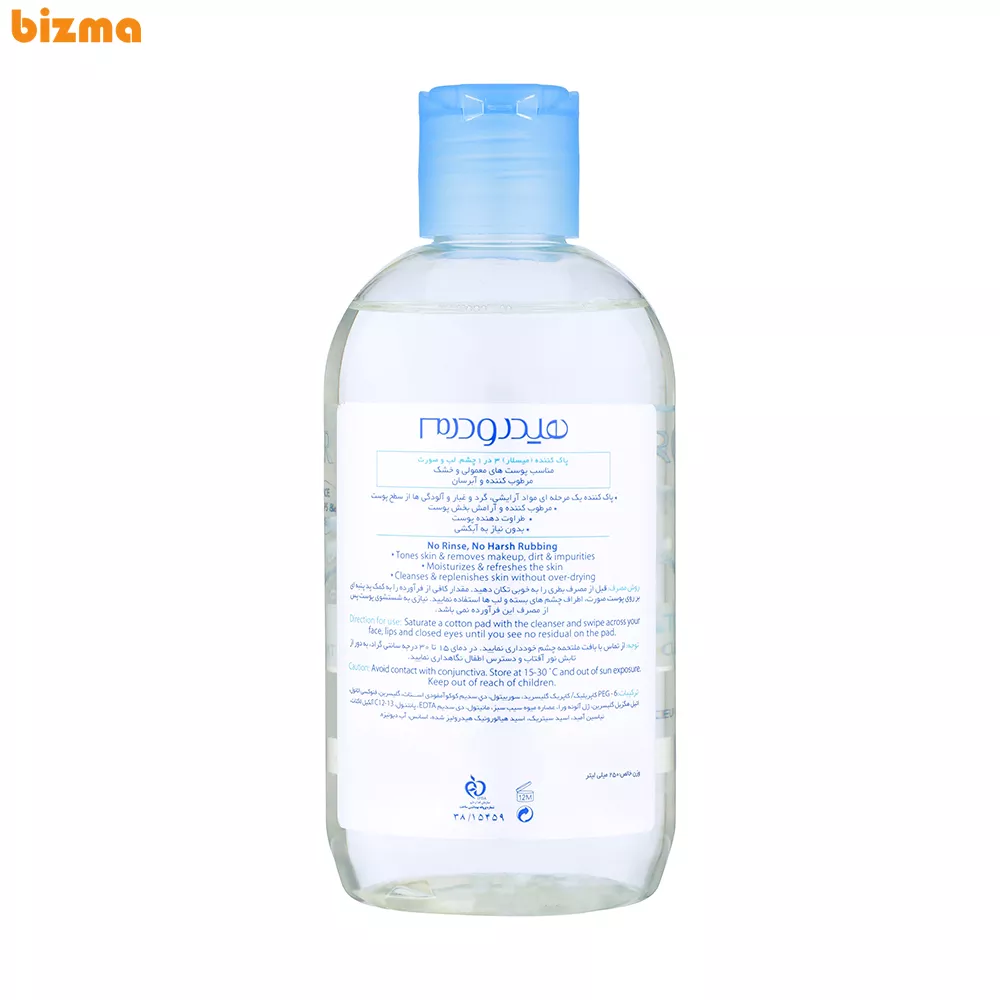 میسلار واترها محصولات کاربردی و مفیدی هستند که کاربرد اصلی آنها زدودن آلودگی، چربی اضافه و آرایش از سطح پوست است. این محصولات جهت تکمیل فرآیند پاکسازی صورت به کار رفته و با جذب ناخالصیها به شویندهها جهت پاکسازی کامل پوست کمک میکنند. میسلارواتر آبرسان پوست خشک و حساس هیدرودرم، پاک کننده قوی ناخالصیها وسبوم اضافه پوست بوده و تقویت کننده و آرامبخش پوست است. این محصول با خواص رطوبت رسانی خود مناسب پوستهای خشک و حساس بوده و بدون ایجاد حس کشیدگی و دهیدراته شدن قادر است پوست را پاکسازی کرده و به آن طروات و شادابی بخشد. میسلارواتر هیدرودرم در کاهش قرمزی پوست و التهابات آن موثر بوده و التیام بخش پوست است. این محصول پس از استفاده نیاز به آبکشی نداشته و این یکی از مزایای خرید میسلار واتر هیدرودرم به شمار میرود. هنگامی که به آب دسترسی ندارید میتوانید بدون نگرانی از آسیب به پوست خود از این محلول جهت پاکسازی استفاده کرده و سلامت و شادابی را به آن هدیه دهید. این محصول فاقد الکل، پارابن و صابون بوده و ایجاد حساسیت نمیکند.
