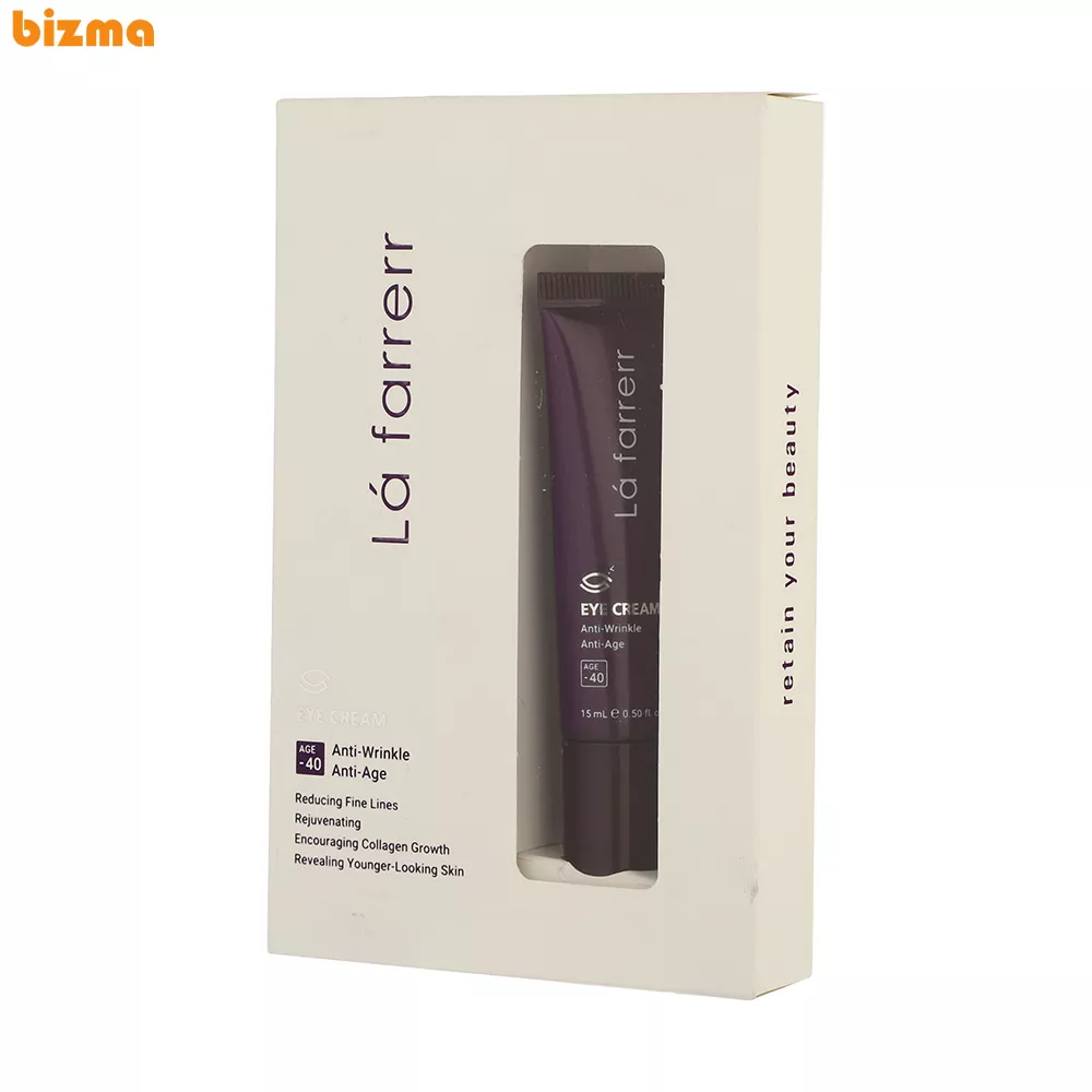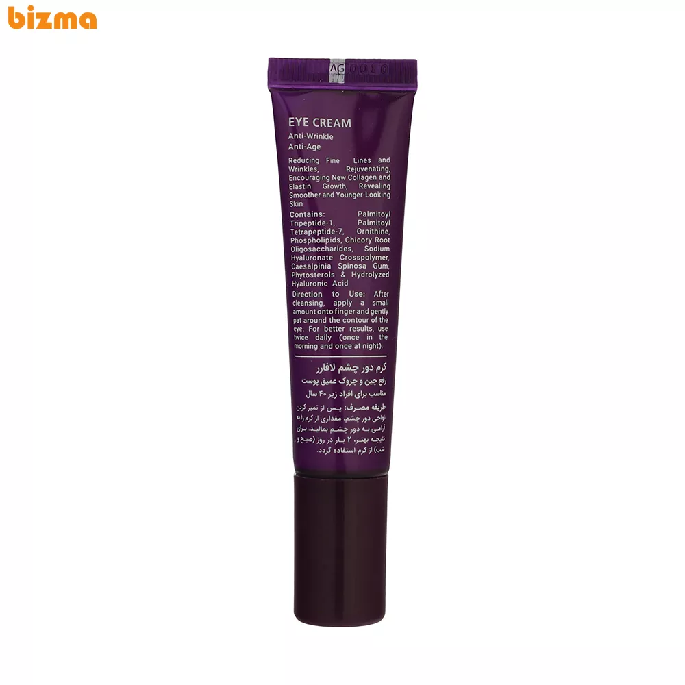 کرم دور چشم ضد چروک 15 میلی لیتری لافارر برای افراد زیر 40 سال، در واقع پوست دور چشم شما را به وسیله تقویت کلاژن سازی، مستحکم میکند و با تغذیه مداوم پوست، اجازه نمیدهد علائم پیری به آن نزدیک شوند. این کرم ضد چروک دور چشم یک آبرسان و ضد چروک قوی است. کرم دور چشم Lafarrerr مناسب انوع پوست میباشد. این کرم ضد چروک دارای خاصیت های شاداب کننده، تغذیه کننده، جوان کننده میباشد. کرم دور چشم لافارر حاوی پپتیدهای مؤثر، هیالورونیک اسید، اورنیتین، فسفولیپیدها و فیتواسترول میباشد و فاقد تست حیوانی است.کرم دور چشم ضد چروک لافارر مناسب افراد با انواع پوست و سن زیر 40 سال میباشد.