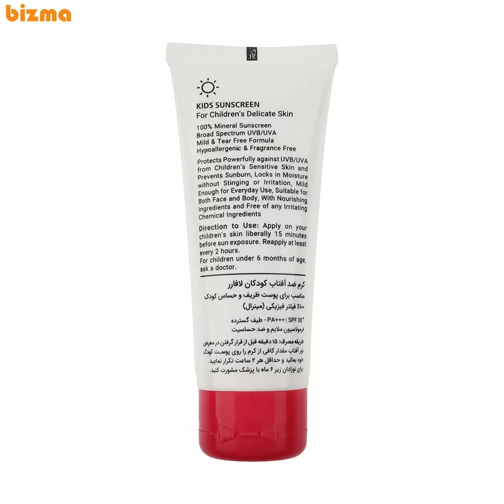 سایر توضیحات | مناسب برای پوست ظریف و حساس کودک 100% فیلتر فیزیکی (مینرال) SPF30+ PA+++ فرمولاسیون ملایم و ضد حساسیت |