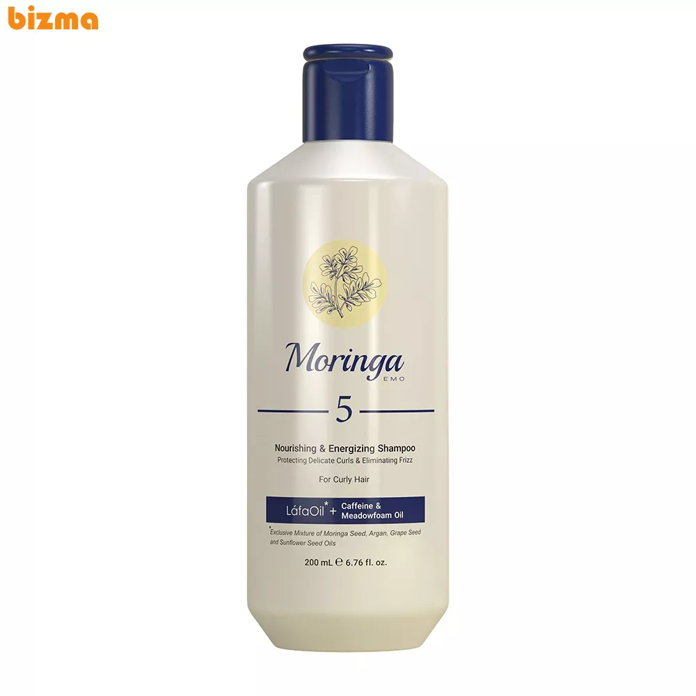 شامپو مغذی و انرژیبخش مورینگا اِمو مدل 5 با آبرسانی مؤثر، خشکی و وز موها را از بین برده و با افزایش نرمی و لطافت تارهای مو، از ایجاد گره در موهای فر جلوگیری میکند. این محصول با تقویت و تغذیه فولیکولهای مو، به کاهش ریزش آنها کمک میکند. همچنین در حفظ حالت طبیعی موهای فر و بهبود ظاهر و حالتپذیری آنها بسیار مؤثر است.