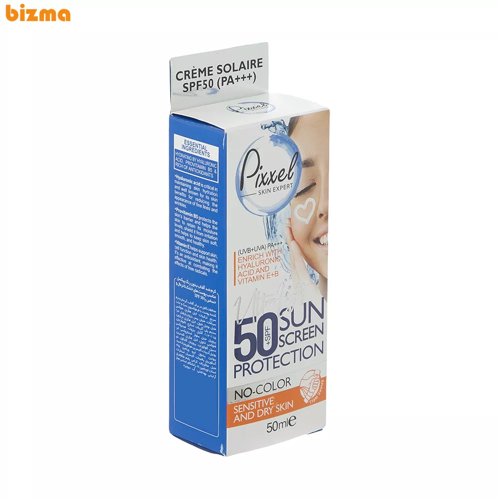 کرم ضدآفتاب بی رنگ پیکسل SPF 50 مدل Sensitive مناسب پوست های خشک و حساس حجم 50 میلی لیتر