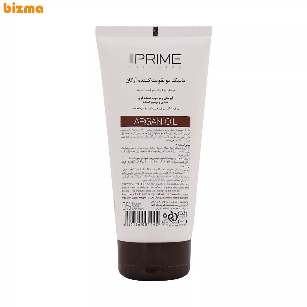 ماسک مو بعد از حمام پرایم با استفاده از روغن آرگان و عصاره انبه سبب آبرسانی عمقی، احیای ساقه مو و جلوگیری از موخوره میگردد. محصول حاوی روغن دانه انار و میخک با خواص آنتیاکسیدانی قوی و تاثیر شناختهشده در تثبیت رنگ مو میباشد.ماسک مو تقویت کننده آرگان پریم با بهره گیری از ترکیبات کاملا گیاهی و ارگانیک مانند روغن آرگان، روغن هسته انار و روغن دانه انبه بهترین انتخاب برای موهای رنگ شده و آسیب دیده است. این ماسک بدون نیاز به آبکشی تقویت کننده و ترمیم کننده موهای شماست و ظاهری زیبا و آراسته به موهای شما میدهد.