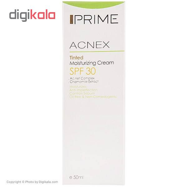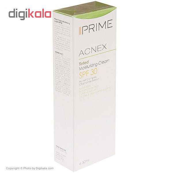 کرم مرطوبکننده برند «پریم» (Prime) مدل (Acnex Tinted) حجمی معادل 50 میلیلیتر دارد که از نوع رنگی است. مرطوبکنندهی پریم با SPF30 میتواند نقش یک ضدآفتاب را هم داشته باشد؛ هرچند میزان SPF بالا نیست اما بازهم از برخورد اشعههای مضر نور خورشید پوست را محفوظ نگهمیدارد. این کرم مرطوب هم بهعنوان یک ضدآفتاب و هم بهعنوان یک کرمپودر قابل استفاده است. پریم آبرسانی به پوست را برعهده دارد و رطوبت موردنیاز پوست را هم حفظ میکند و خشک شدن پوست جلوگیری میکند. مرطوبکنندهی پریم فاقد چربی است و برای افرادی که پوستهایی چرب و بسیار چرب دارند مناسب است. پریم ضدجوش و آکنه است و توانایی کنترل سبوم پوست را دارد. استفاده از پریم نقصها و عیوب صورتتان را میپوشاند و جلوهای زیبا، خوشرنگ و بدون نقص به پوست شما میبخشد. پریم علاوهبر مرطوبکنندگی خاصیت نرمکنندگی پوست را هم دارد و استفاده از کرم پریم نرمی و لطافت پوست را هم بهدنبال دارد. محفظهی نگهدارندهی کرم مرطوبکننده و نرمکنندهی پریم تیوپی و از جنس پلاستیک است که استفادهی بسیار آسانی دارد.