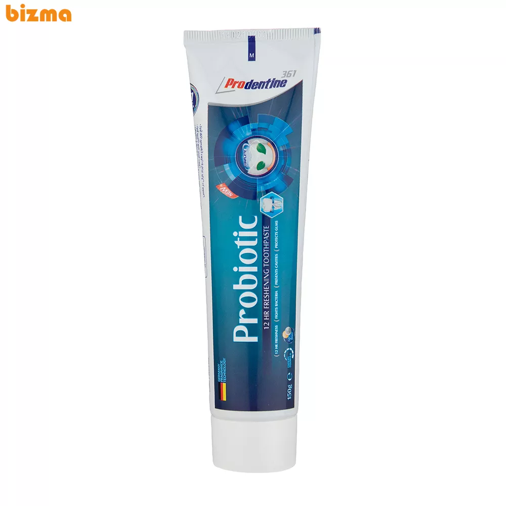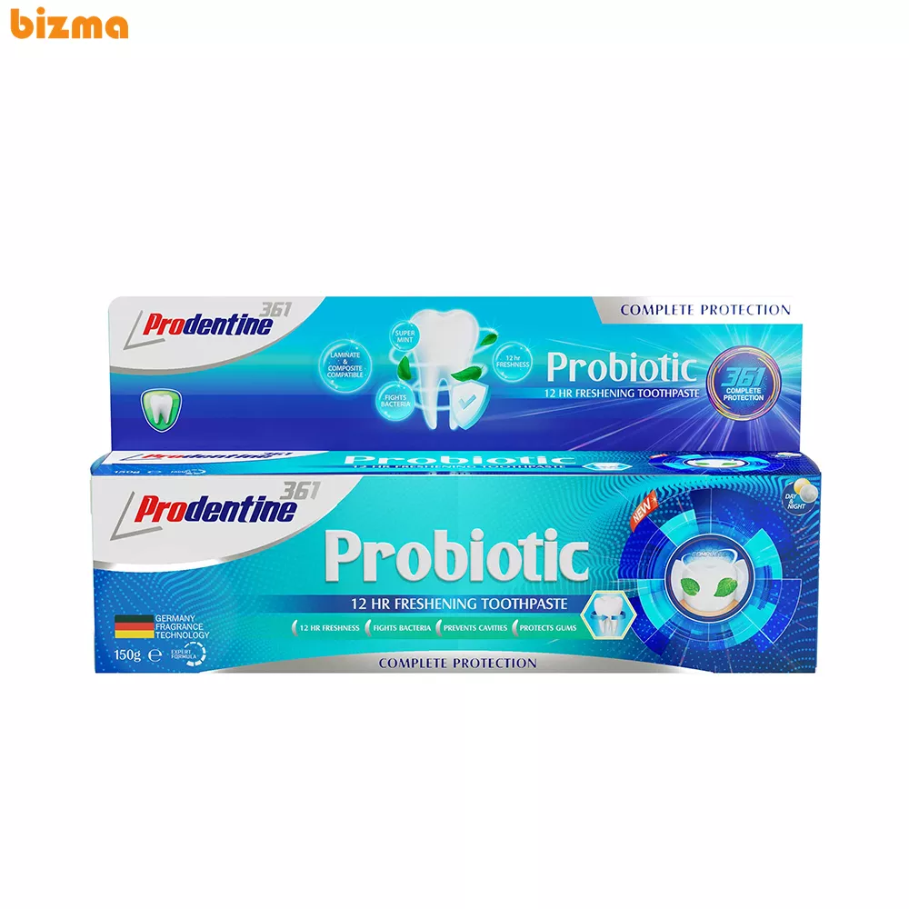 مواد پروبیوتیک موجود در خمیر دندان پرودنتین 361 مدل Probiotic با متعادل نمودن تعادل باکتریایی دهان، سبب رفع بوی نامطبوع دهان می گردد.