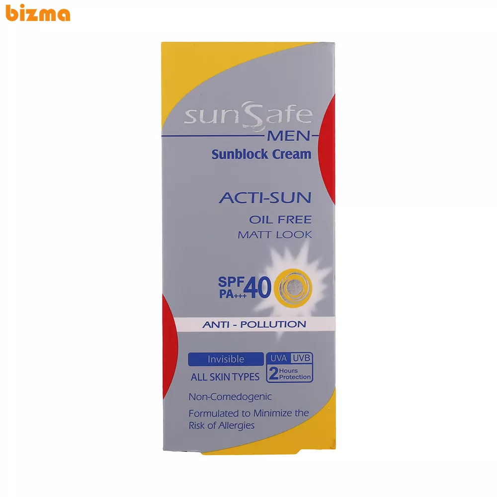 کرم ضد آفتاب بی رنگ سان سیف با SPF40 مناسب آقایان حجم 50 میلی لیتر