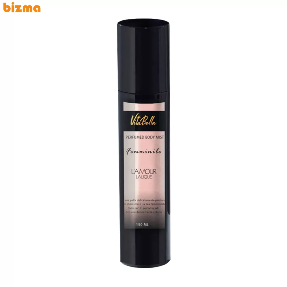 بادی میست LAMOUR ویتابلا با رایحه ای ملایم و شیرین که بیشتر از بهار نارنج ، گل رز و گل مریم بکار رفته در ترکیباتش حاصل شده، حس خنک و روز های بهاری را با اسپری شدن بر روی بدن برای شما تداعی می کند.