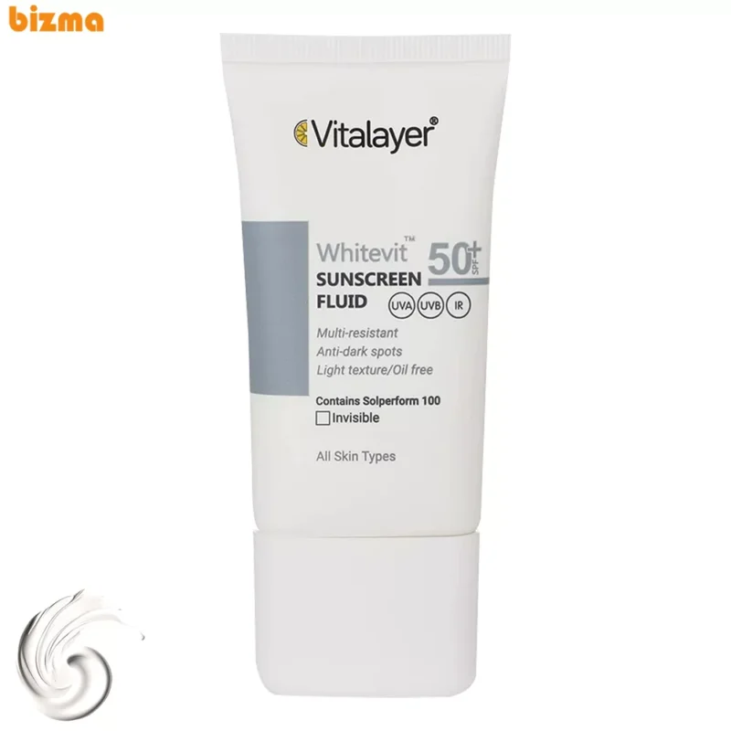 فلوئید ضدآفتاب بی رنگ ویتالیر مدل Whitevit یکی از محصولات محبوب این برند برای محافظت از پوست در برابر اشعههای مضر آفتاب است. این فلوئید ضد آفتاب با SPF50، به پوست شما کمک میکند تا در برابر اشعههای UVB محافظت شود. یکی از ویژگیهای منحصر به فرد این محصول، عدم داشتن رنگ روی پوست است. این به معنی است که استفاده از این ضد آفتاب لکهای سفید روی پوست شما باقی نخواهد گذاشت، این ویژگی برای افرادی که دوست دارند اثری از ضد آفتاب روی پوستشان باقی نماند، مناسب است.